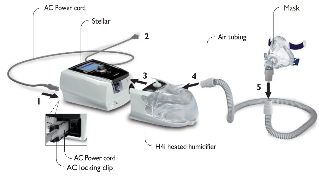 (Mask, circuit, and additional accessories may vary depending on setup requirements.)